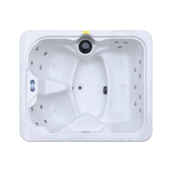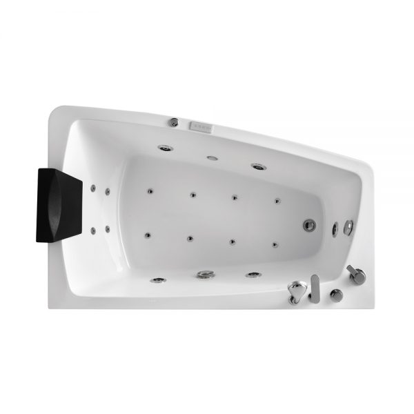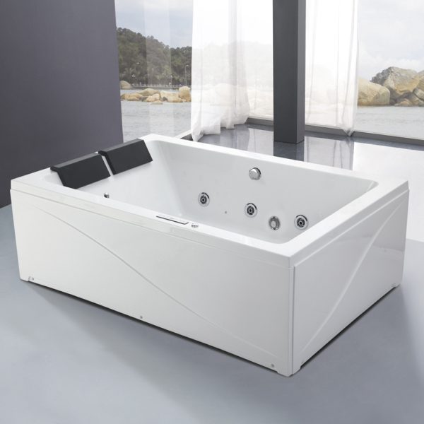 Equipamiento: Bañera hidromasaje 18 jets, bomba 1.5Hp 110V, almohadas (2), desagüe con rebalse, grifería