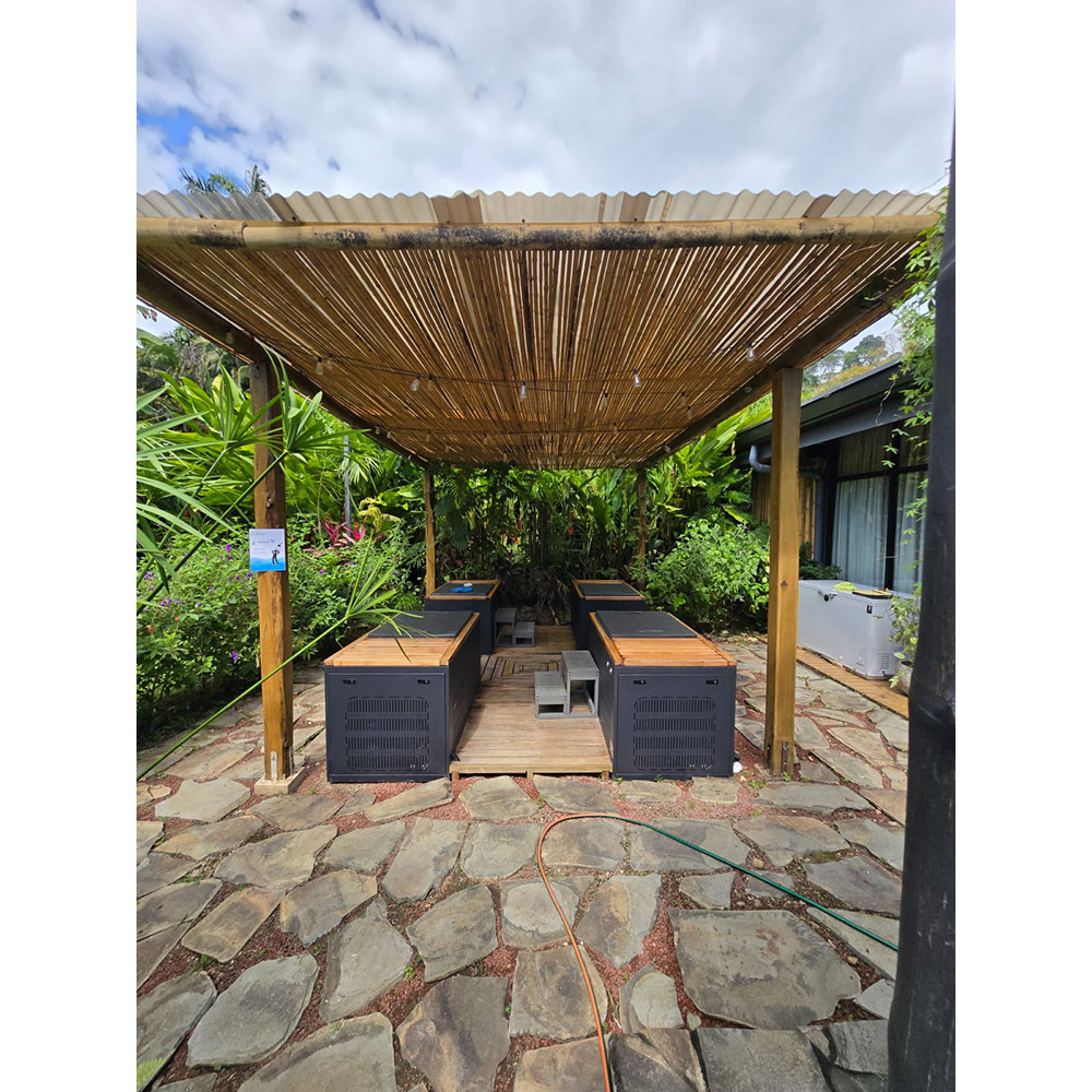 Materiales: Acero Inoxidable #304, Metal y Madera tratada (Cedro Rojo)